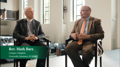Concordia Seminary Dean of Theological Research and Publication Dr. Kevin Golden takes some time to introduce Rev. Mark Barz, who recently joined the Seminary as campus chaplain.