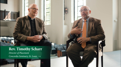 Concordia Seminary Dean of Theological Research and Publication Dr. Kevin Golden speaks with Rev. Timothy Scharr, who recently joined the Seminary as director of Placement.
