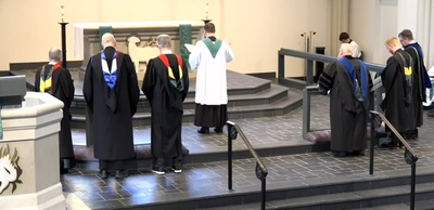 Dr. Egger preaches on 1 Peter 2:4–10 at the 187th Opening Service of Concordia Seminary, St. Louis. With the installation of Rev. Mark Barz is the campus chaplain at Concordia Seminary, St. Louis. Dr. Gerhard Bode is chairman of the Department of Historical Theology, professor of Historical Theology, director of the Center for Reformation Research, archivist and the Eugene E. and Nell S. Fincke Graduate Professor of Theology at Concordia Seminary, St. Louis. Rev. Paul Hoemann is a senior gift officer at Concordia Seminary, St. Louis. Rev. Jesse Kueker is director of Enrollment at Concordia Seminary, St. Louis. Dr. David Lewis is an associate professor of Exegetical Theology, director of the Master of Divinity and Residential Alternate Route Programs, Student Association adviser and the Dr. Jack Dean Kingsbury Professor of New Testament Theology at Concordia Seminary, St. Louis. Rev. Tim Scharr is the director of Placement at Concordia Seminary, St. Louis. There is also Assignment of Vicarages and Internships in this service for Specific Ministry Pastors, Ethnic Immigrant Institute of Theology (Pastoral), Ethnic Immigrant Institute of Theology (Deaconess), Center For Hispanic Studies (Pastoral), Center For Hispanic Studies (Deaconess), Cross-Cultural Ministry Center, and Online Deaconess Studies.